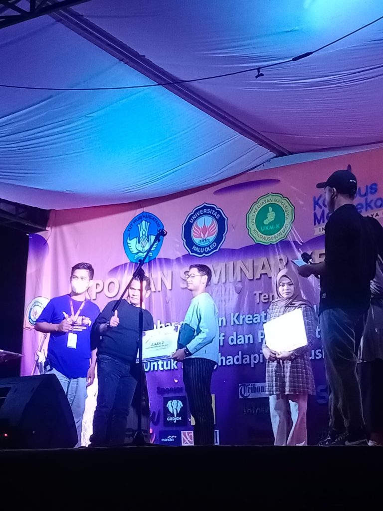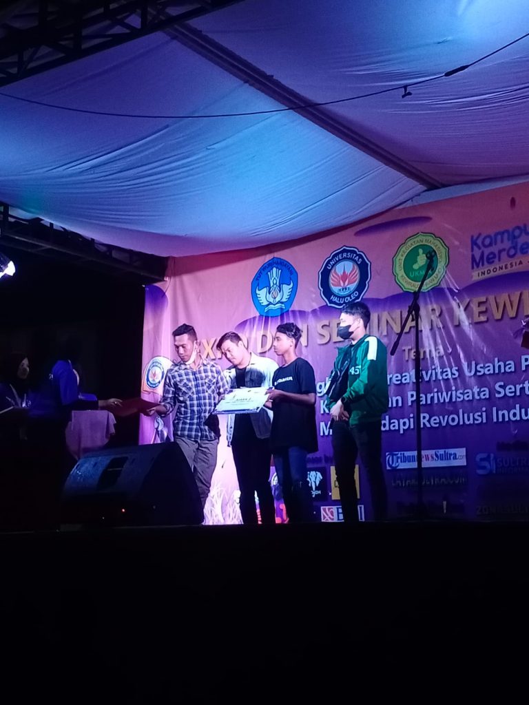 Kendari, sultrainformasi.id – Unit Kegiatan Mahasiswa Kewirausahaan (UKM-K), Fakultas Ilmu Budaya (FIB), Universitas Halu Oleo (UHO) Kendari, Sulawesi Tenggara (Sultra) baru saja melakukan penyerahan hadiah bagi peserta yang mengikuti lomba, pada Sabtu (06/11) malam.