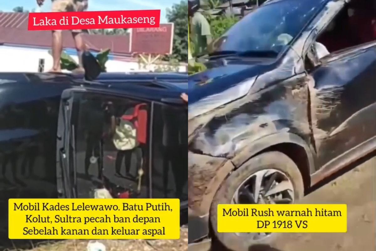 Mobil Rush Ditumpangi Kades Lelewawo di Kolut Kecelakaan, Diduga Pecah Ban lalu Terbalik