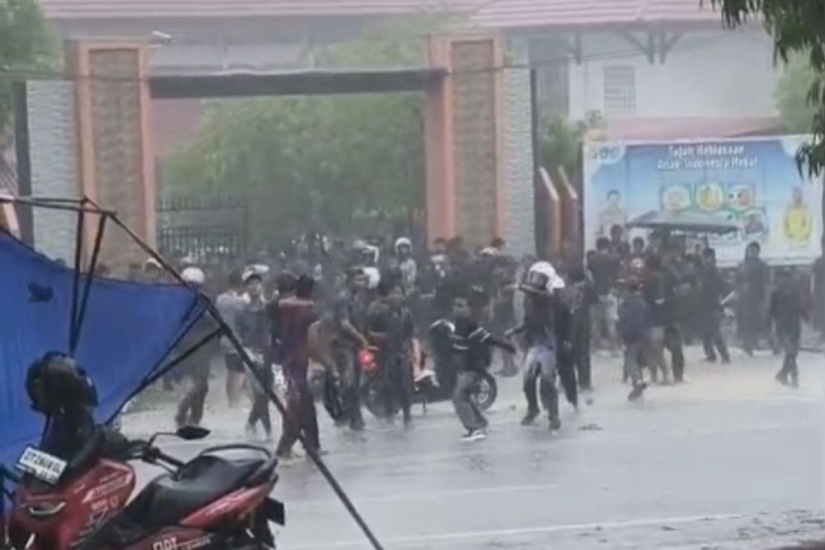 Hujan Lebat Iringi Aksi Saling Serang Remaja di Depan SMKN 1 Kendari