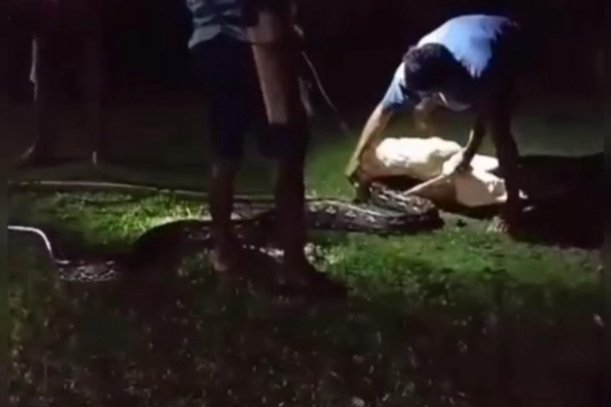 Geger! Ular Piton Berukuran 5 Meter Telan Ayam Ternak Warga