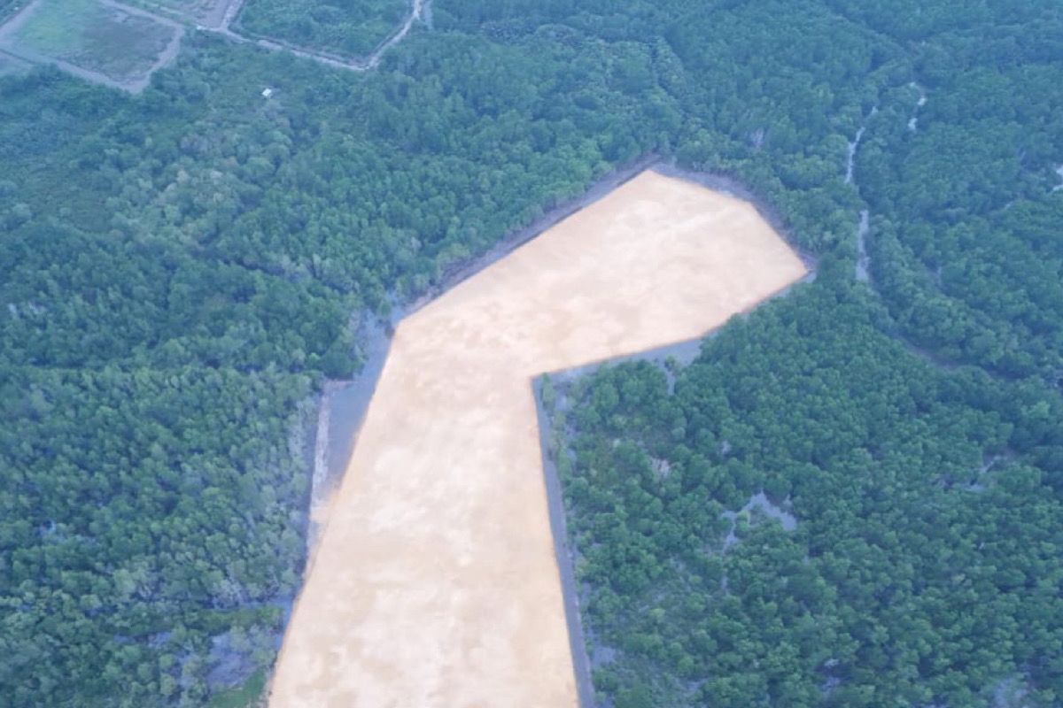 “Kalau dia itu sudah punya izin dari Kehutanan Provinsi, sudah ke pemerintah pusat, sudah ada izin karena itu ada mangrove yang dia tebang paling ujung sana,” ujarnya.