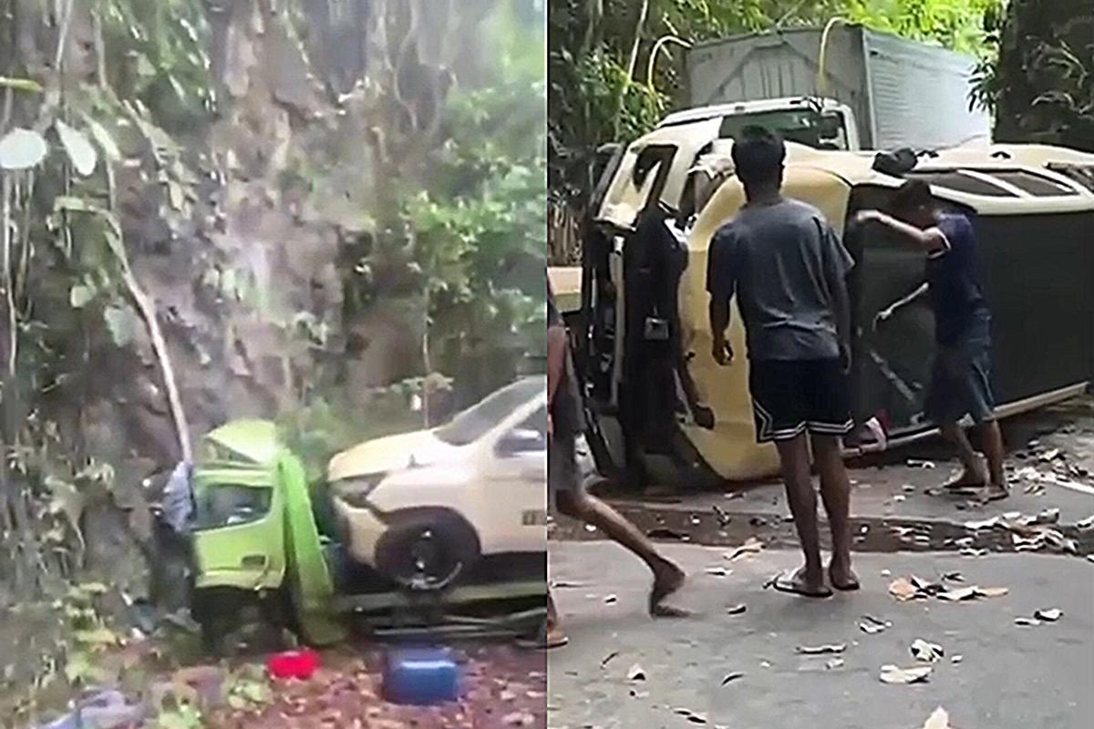 Mati Mesin di Jalan Menurun, Truk Pengangkut Mobil Tabrak Tebing di Kolut