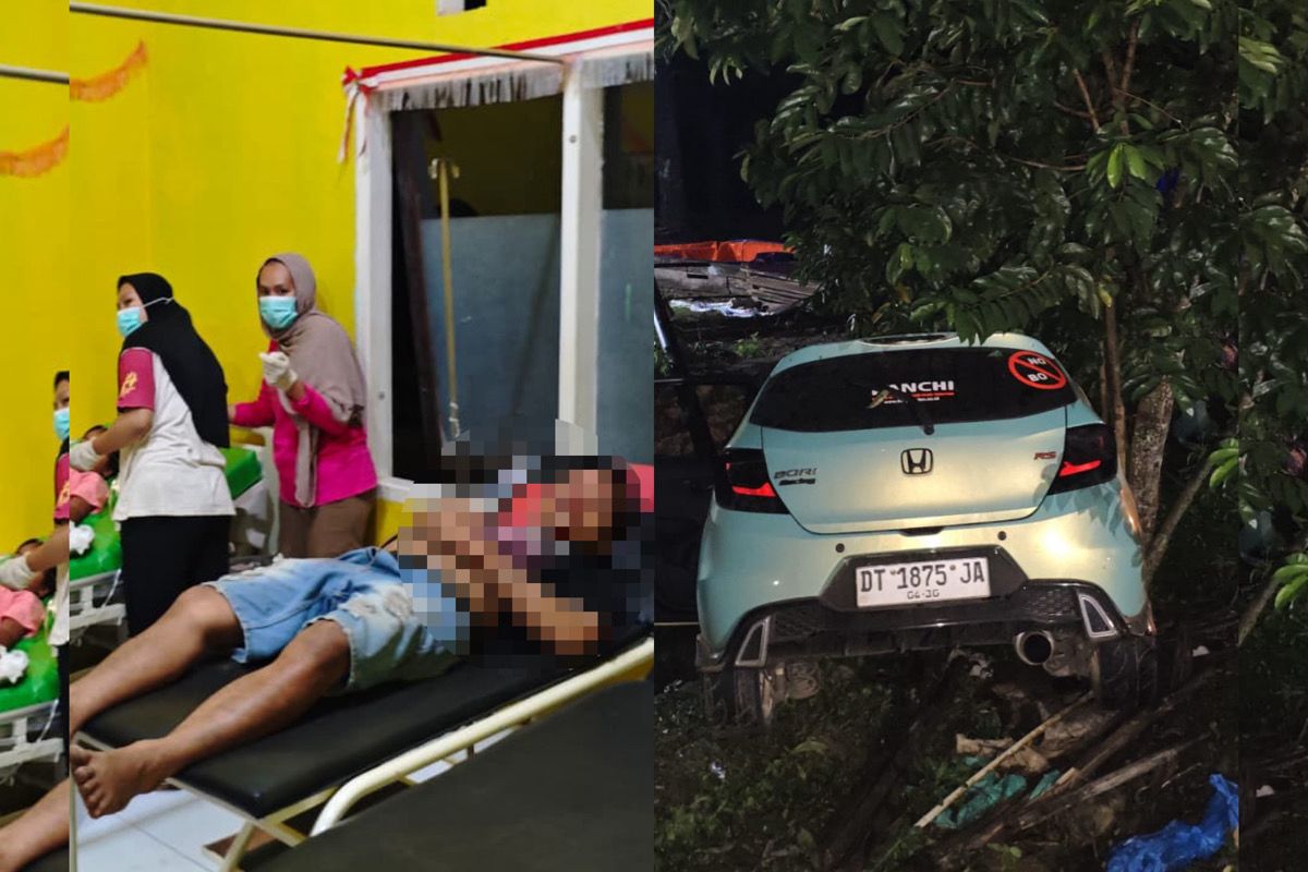 Laka Tunggal di Konut Mobil Brio Terjun ke Selokan, Satu Penumpang Tewas