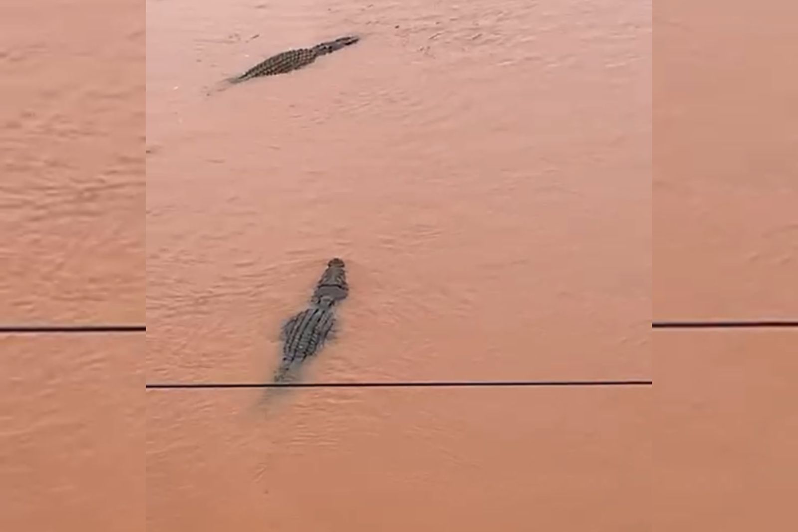 Dalam video yang beredar luas, dua ekor buaya itu terlihat santai berenang di sungai yang airnya keruh kecokelatan. Seorang warga yang merekam video tersebut bahkan terdengar mengatakan bahwa ukuran buaya tersebut jauh lebih besar jika dilihat langsung.