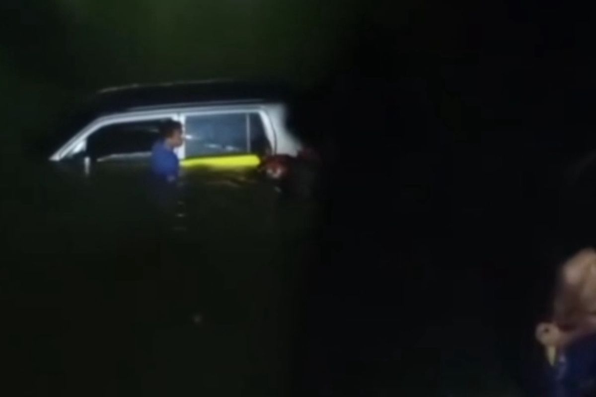 Namun, pengemudi bernama Arwin tidak langsung menyadari bahwa mobil yang dikendarainya telah terguling dan masuk ke sungai hingga akhirnya terbawa arus. Beruntung, warga yang berada di sekitar lokasi dengan sigap memberikan pertolongan dan menahan kendaraan agar tidak hanyut lebih jauh.