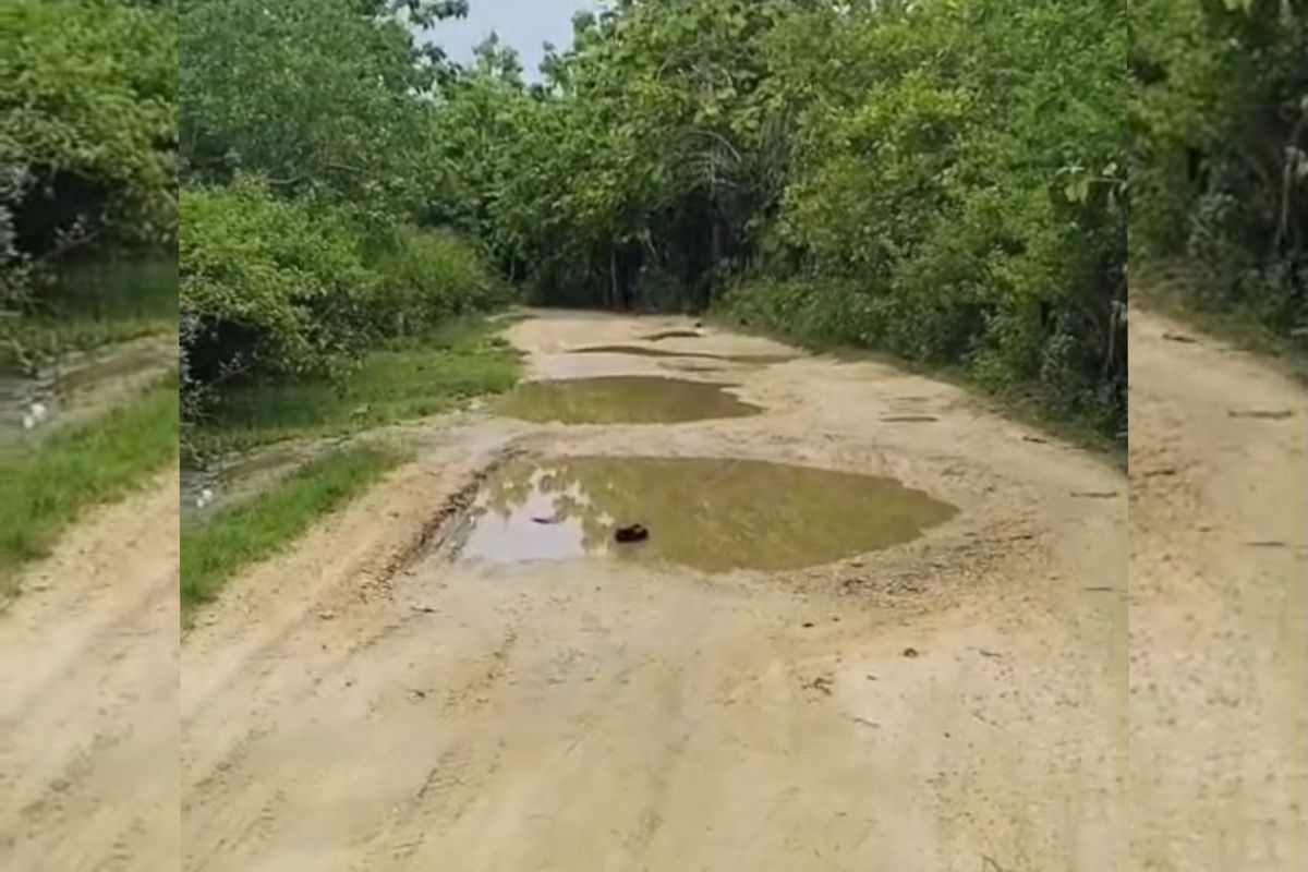 ‎Dalam video yang diterima Sultrainformasi.id, terlihat ruas jalan di wilayah Muna dipenuhi kubangan air besar dan berlubang, sehingga menyulitkan pengendara yang melintas. Kerusakan tersebut membentang cukup panjang dan dinilai membahayakan keselamatan pengguna jalan.