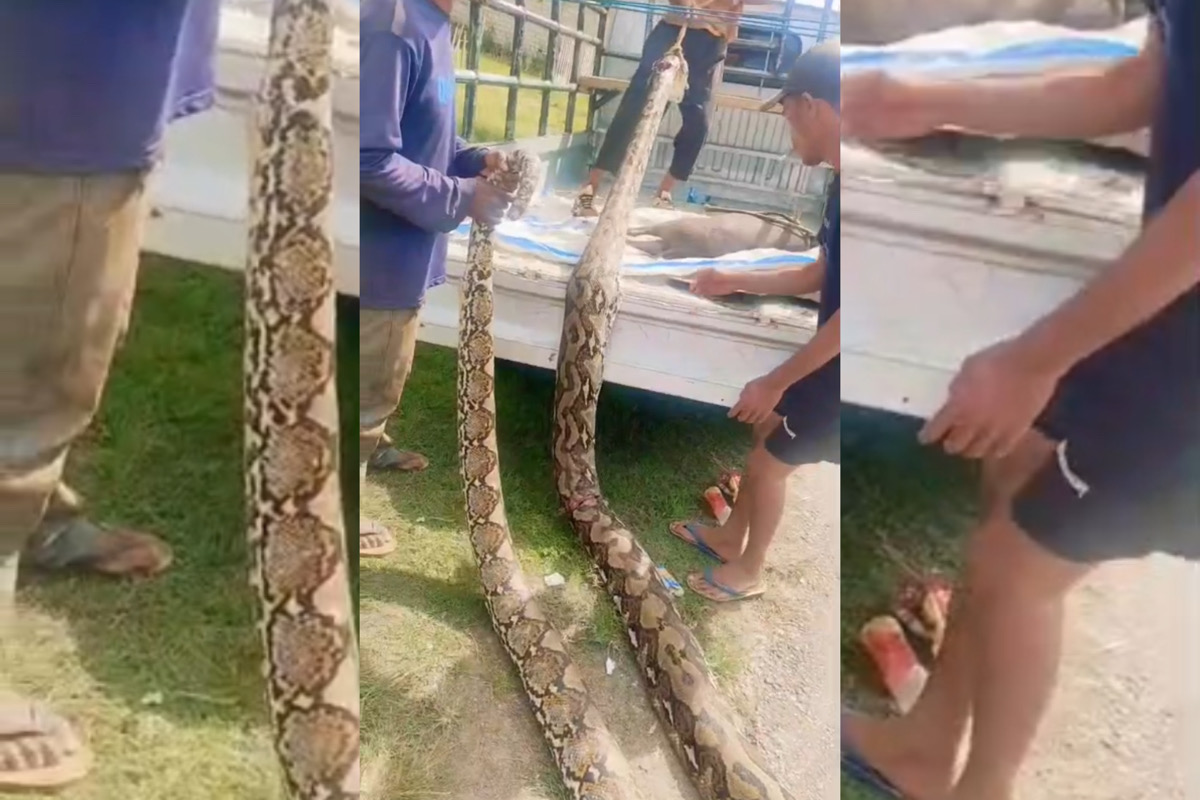 ‎“Besar sekali ini ular, ada berapa meter ini, kisaran 10 meter. Babi saja dia mati,” kata seorang wanita dalam video tersebut dengan nada terkejut.