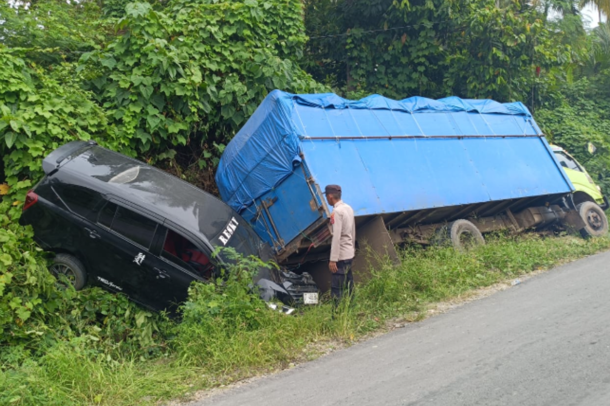 Insiden di Tanjakan Batu Putih Bombana: Truk Air Mineral Tabrak Mobil, Seorang Pengemudi Luka