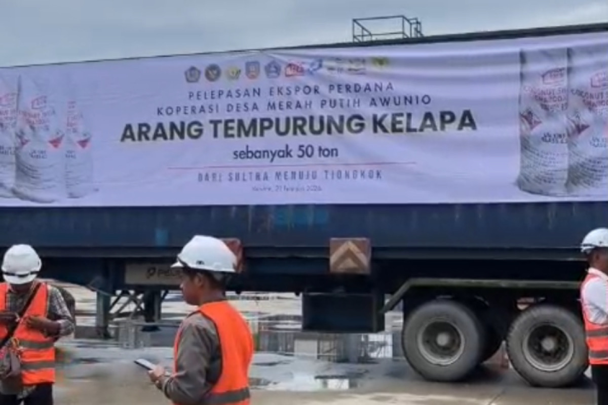KENDARI, SULTRAINFORMASI.ID – Wakil Gubernur Sulawesi Tenggara, Hugua, resmi melaunching ekspor perdana arang tempurung kelapa milik Koperasi Desa Merah Putih Awunio, Kecamatan Kolono, Kabupaten Konawe Selatan (Konsel), Sulawesi Tenggara (Sultra) di Pelabuhan New Port Kendari, Sabtu (21/02/2026).